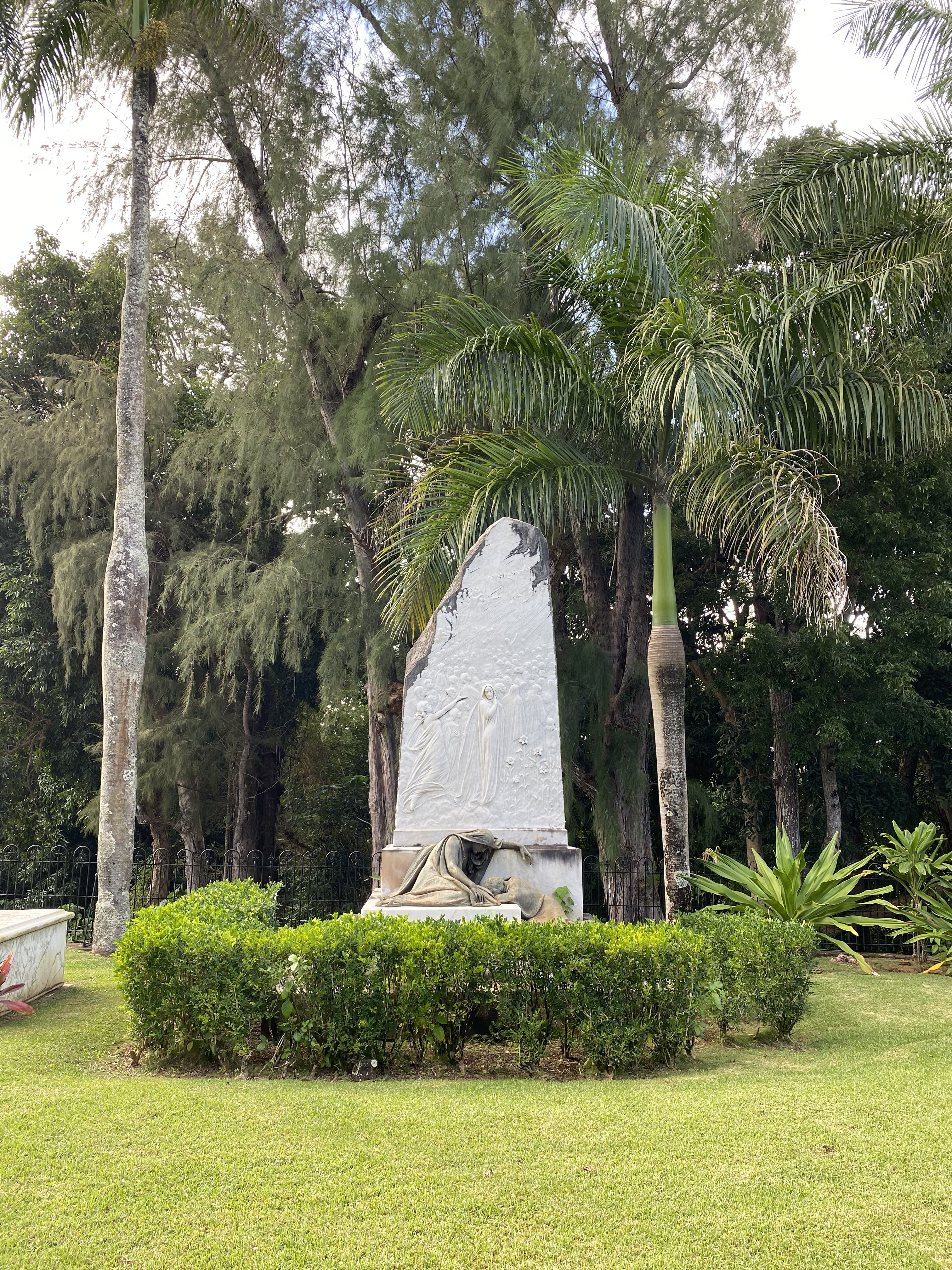 The Monument is a memorial to the kamaaina Rice and Isenberg families. It was christened by Sinding as “The Blessed Souls Wandering Toward Light”. Is a shaft of white marble weighing 10 tons.